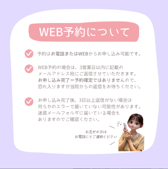 🎗️当院の予約方法はお電話またはWEBどちらかのみです。